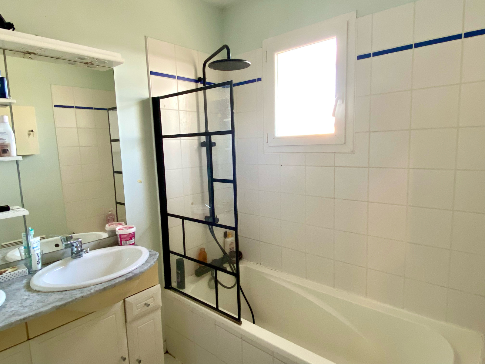 À l’étage, l’espace nuit se compose de trois chambres avec placard, une salle de bain et un WC indépendant.