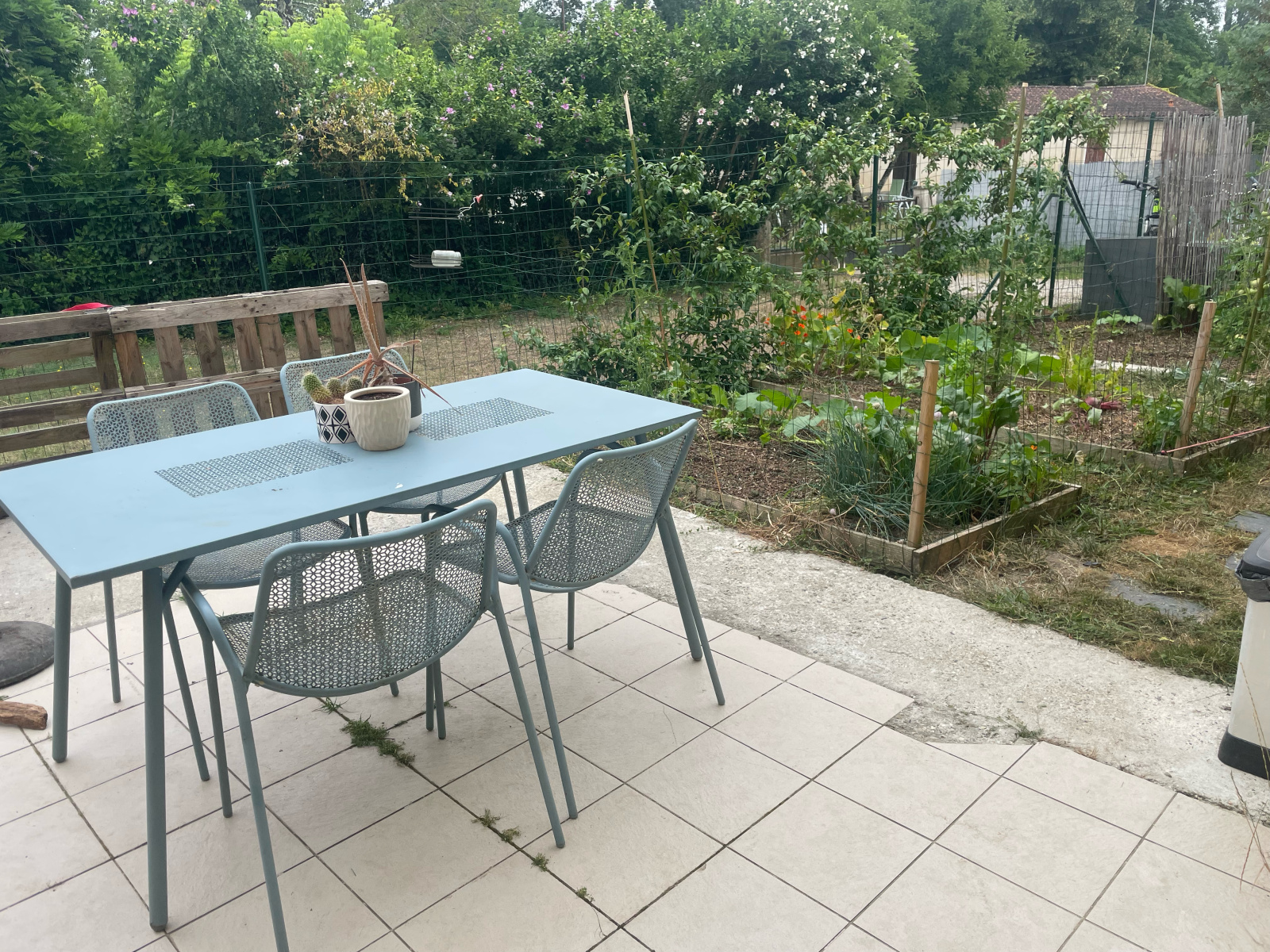 Le terrain est entièrement clos et arboré, à l’avant comme à l’arrière de la maison, offrant un cadre verdoyant et reposant.